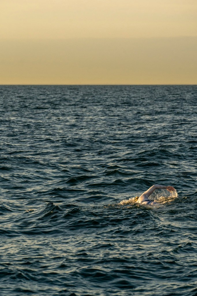 However, impossibly, at this point, I was finally feeling fine. I was peeing on a nice, regular schedule and marveling that my arms, while tired, weren’t in pain. I wasn’t battling any ailments or discomforts, other than some chafing, which we fixed with an extra glob of lanolin. My lower back was aching some, but nothing impossible to manage. And we kept swimming. I was happy and unaware of the tide difficulties, so I was still thinking we’d finish by 4 am.
