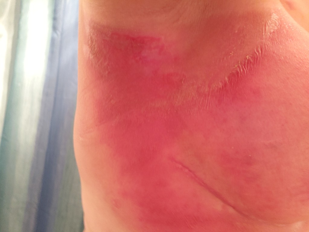 Three puncture-like jellyfish stings. One is right on top of my port scar!